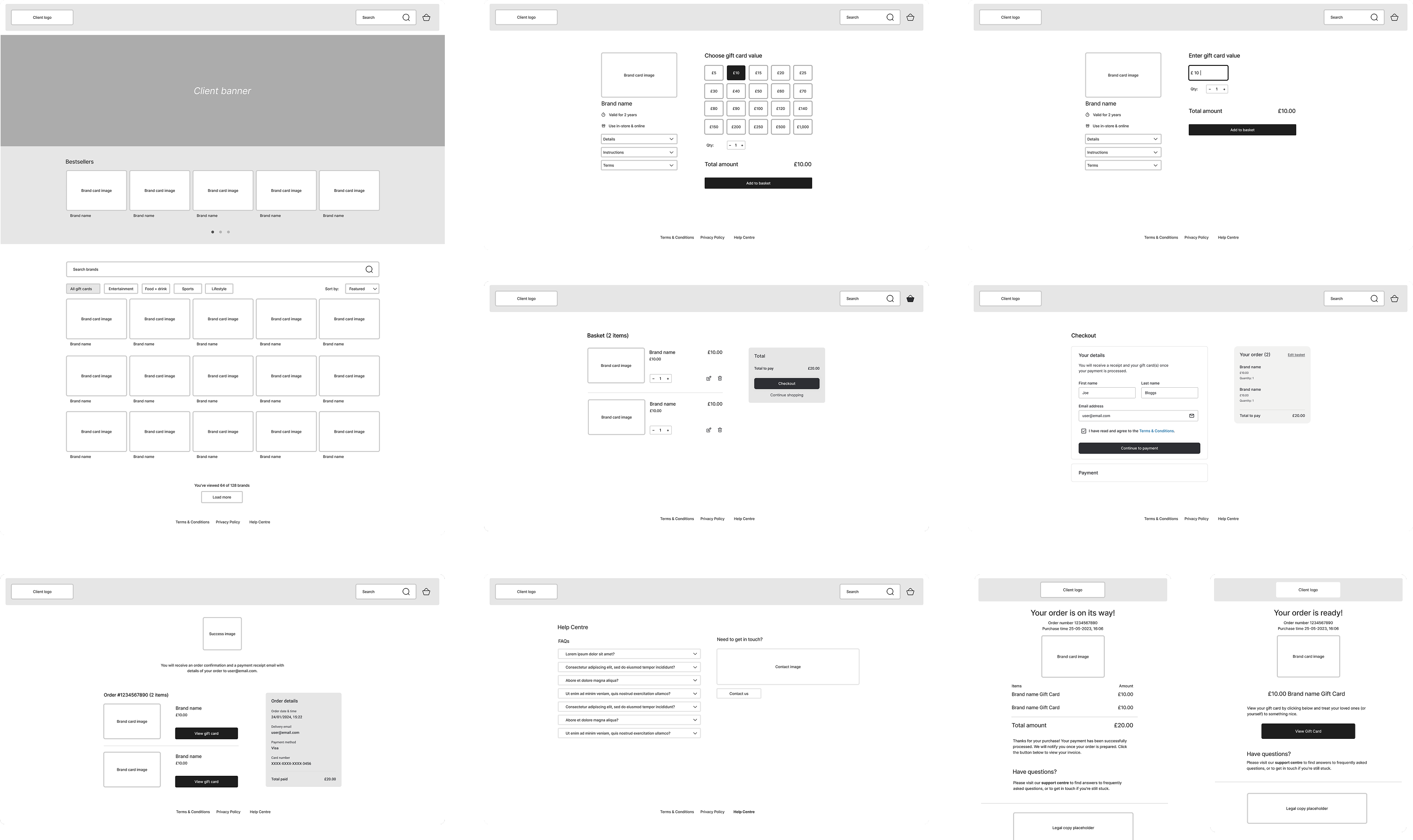 With the structure validated, I moved into UI design. The journey followed familiar e-commerce patterns (browse → basket → checkout → confirmation) to reduce friction for end customers.