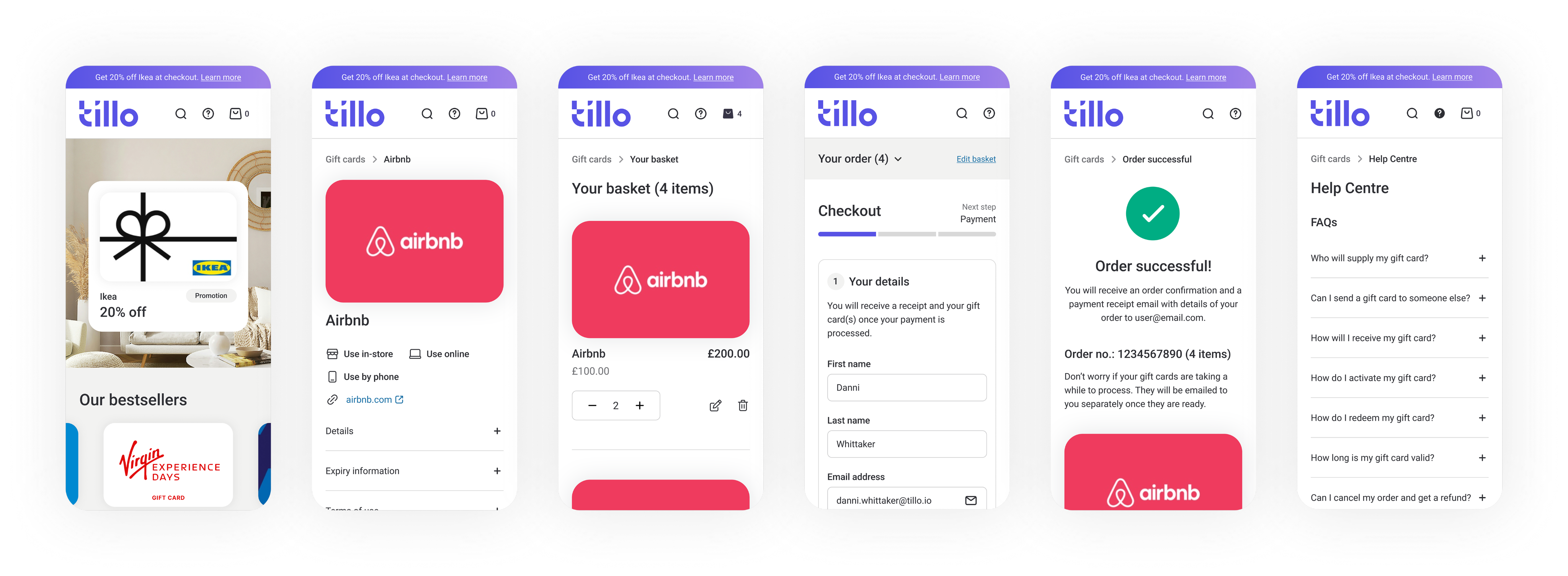 Many existing solutions looked outdated or had unintuitive flows. There was an opportunity for Tillo to differentiate through cleaner design and a smoother purchase journey.